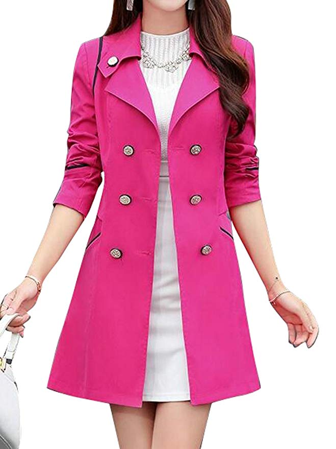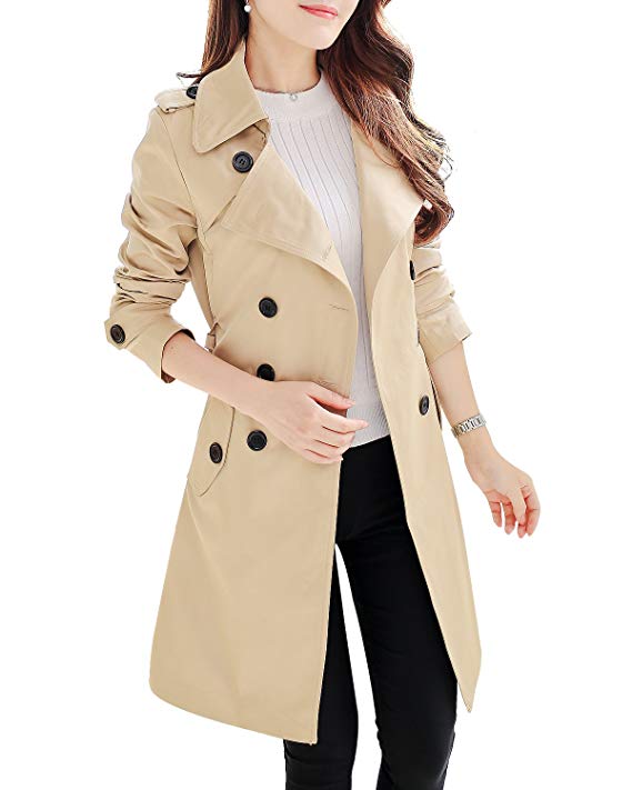 Womens Lapel Long Sleeve Double-Breasted Classic Trench Coat OvercoatMaterial:Polyester Fiber.....