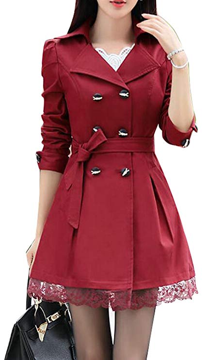 Women Mid Long Double-Breasted Lace Trim Elegant Jacket TrenchcoatMaterial:Cotton blend.....
