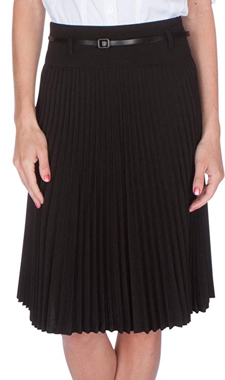 Knee Length Pleated A-Line Skirt with Skinny Belt