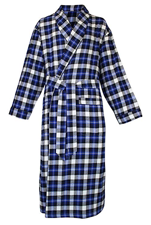Classical Sleepwear Men’s 100% Cotton Flannel Shawl Collar Robe