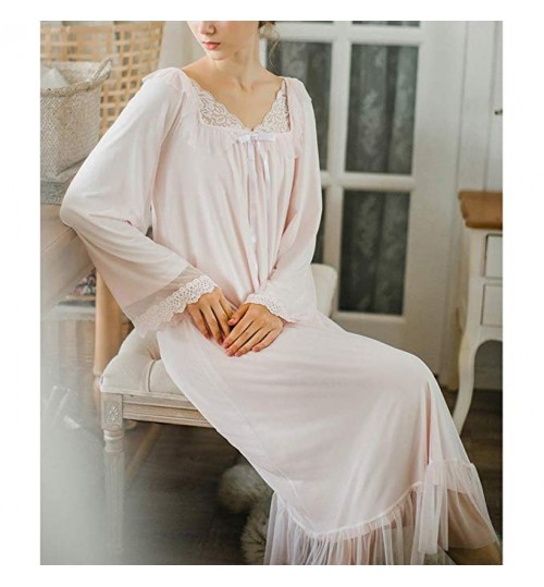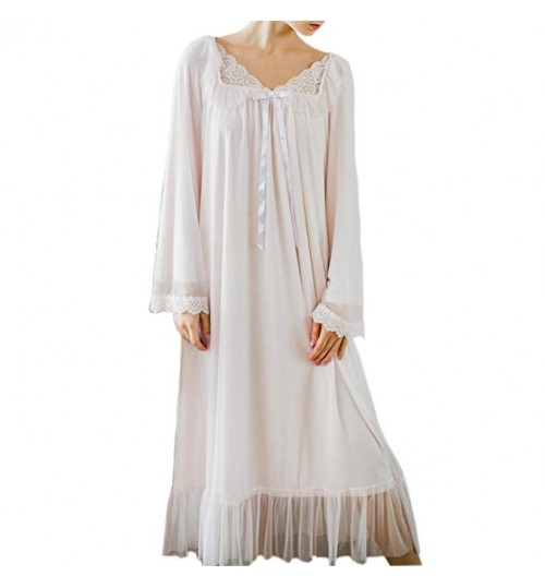 Women's Long Sheer Vintage Victorian Lace Nightgown Sleepwear Pyjamas Lounge Dress Nightwear