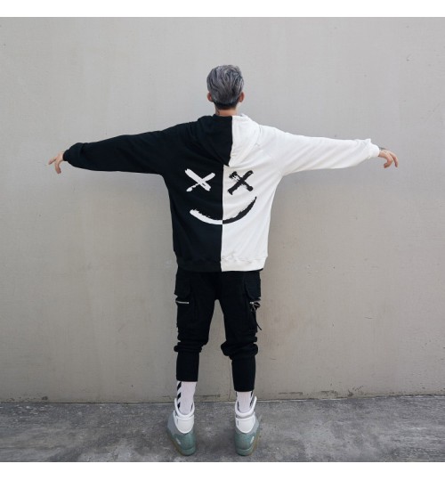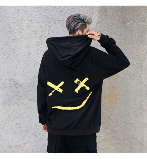 Men Hoodies Sweatshirts Smile Print Headwear Hoodie Hip Hop Streetwear Clothing
